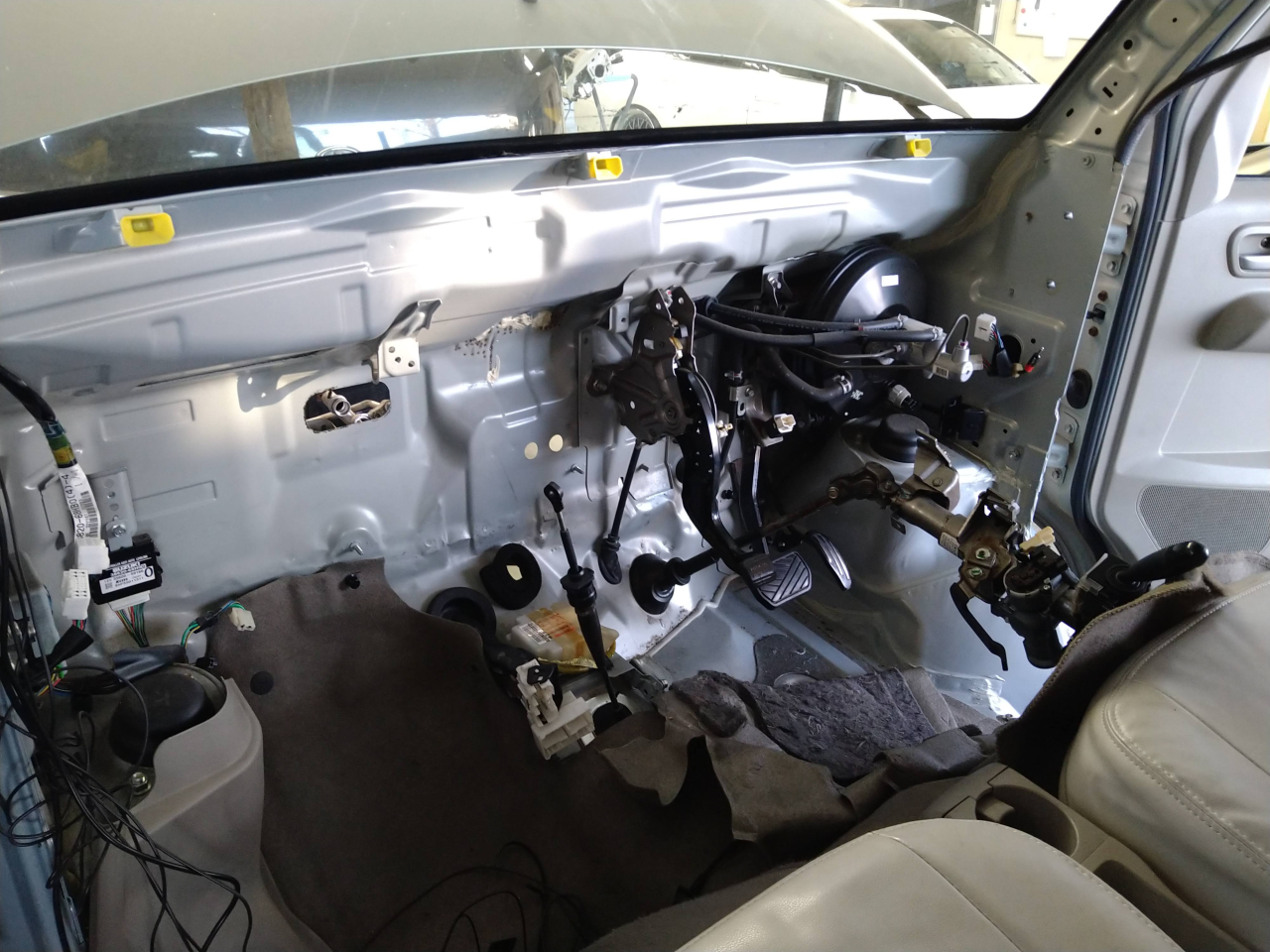 エアコン部分は残った状態を運転席から撮影。こんな風になっているのかと感心。この後元通りに組付けることになるのですが、大変そうです。
